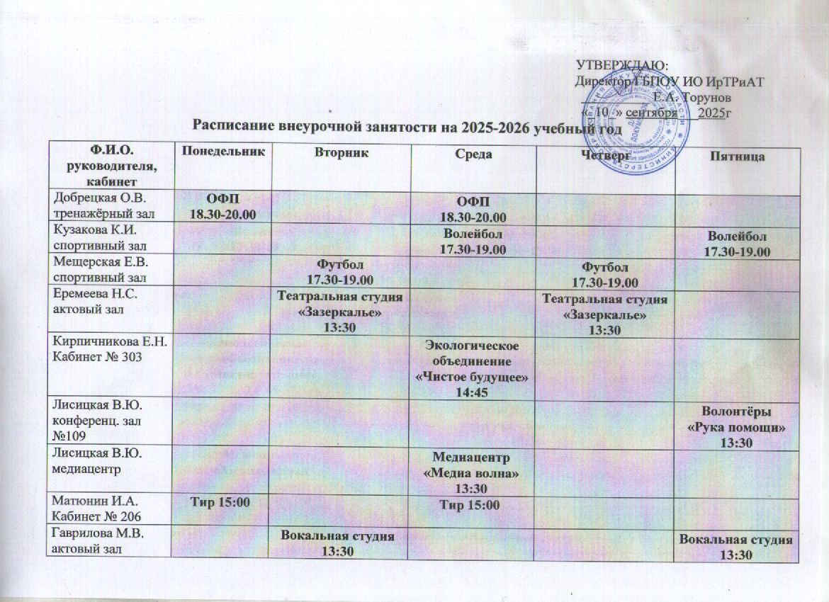 Ответственный за составление расписания занятий - Караваева Алёна Игоревна, каб. 104