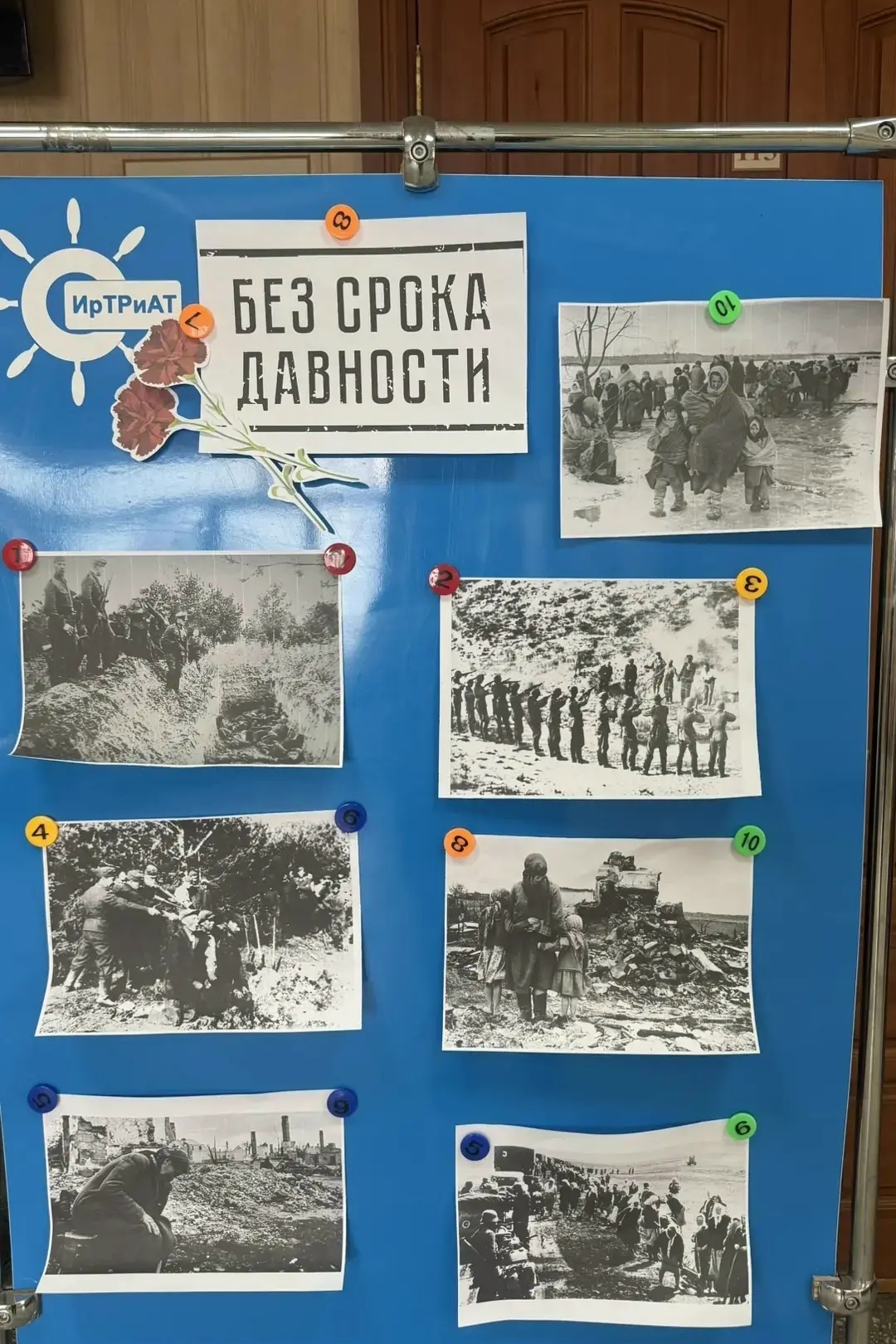 всю неделю стояла выставка, посвящённая памяти о военных преступлениях и геноциде советского народа;