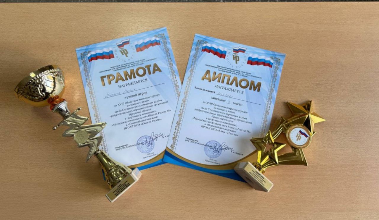 Команда спортивного клуба "Морской Бриз" заняла почетное третье место на XVIII открытом областном турнире по хоккею с мячом среди студенческих клубов профессиональных образовательных организаций Иркутской области в номинации "Молодёжно-спортивная лига Юность России 38"