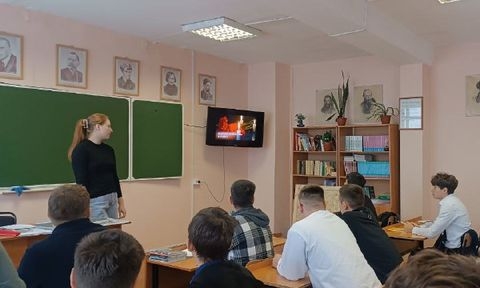 Советник директора по воспитанию Е. В. Шаркова провела беседу со студентами о неоспоримой общественной значимости, серьезной ответственности и огромных рисках, связанных со службой сотрудников ОВД. Также обучающиеся узнали истории наших земляков из числа сотрудников, погибших при исполнении своих служебных обязанностей.