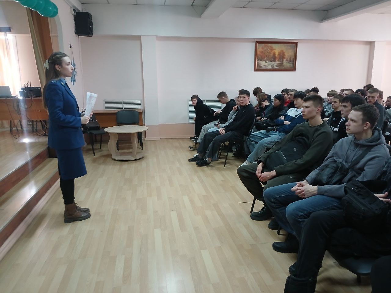 Сегодня в нашем учебном заведении состоялась важная профилактическая беседа. Студенты групп ТОРА-24-1, ТОРА-24-2, ТОРА-25 и М-25 встретились с помощником Байкало-Ангарского транспортного прокурора Ярославой Дмитриевной Красавиной.