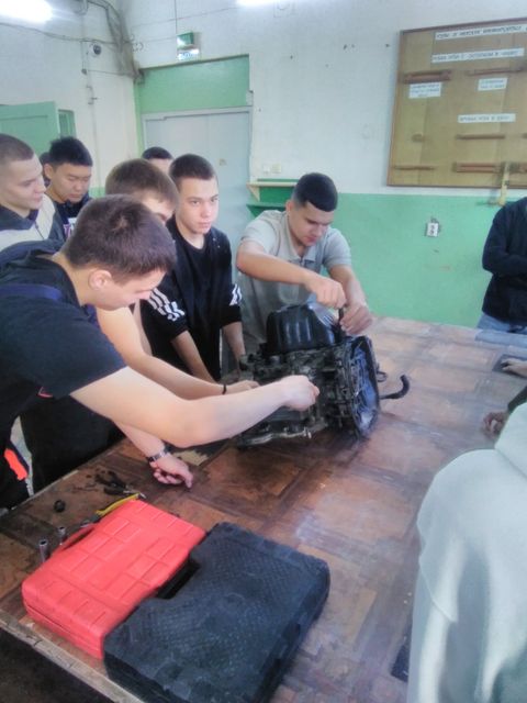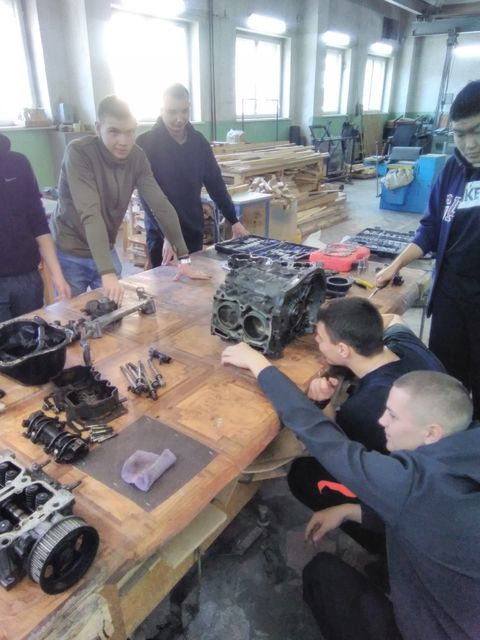 В ходе выездного занятия обучающиеся группы познакомились с устройством и принципом работы оппозитного двигателя внутреннего сгорания EJ 15 от автомобиля Subaru. Также на занятии, обучающиеся самостоятельно произвели полную разборку и сборку данного двигателя.